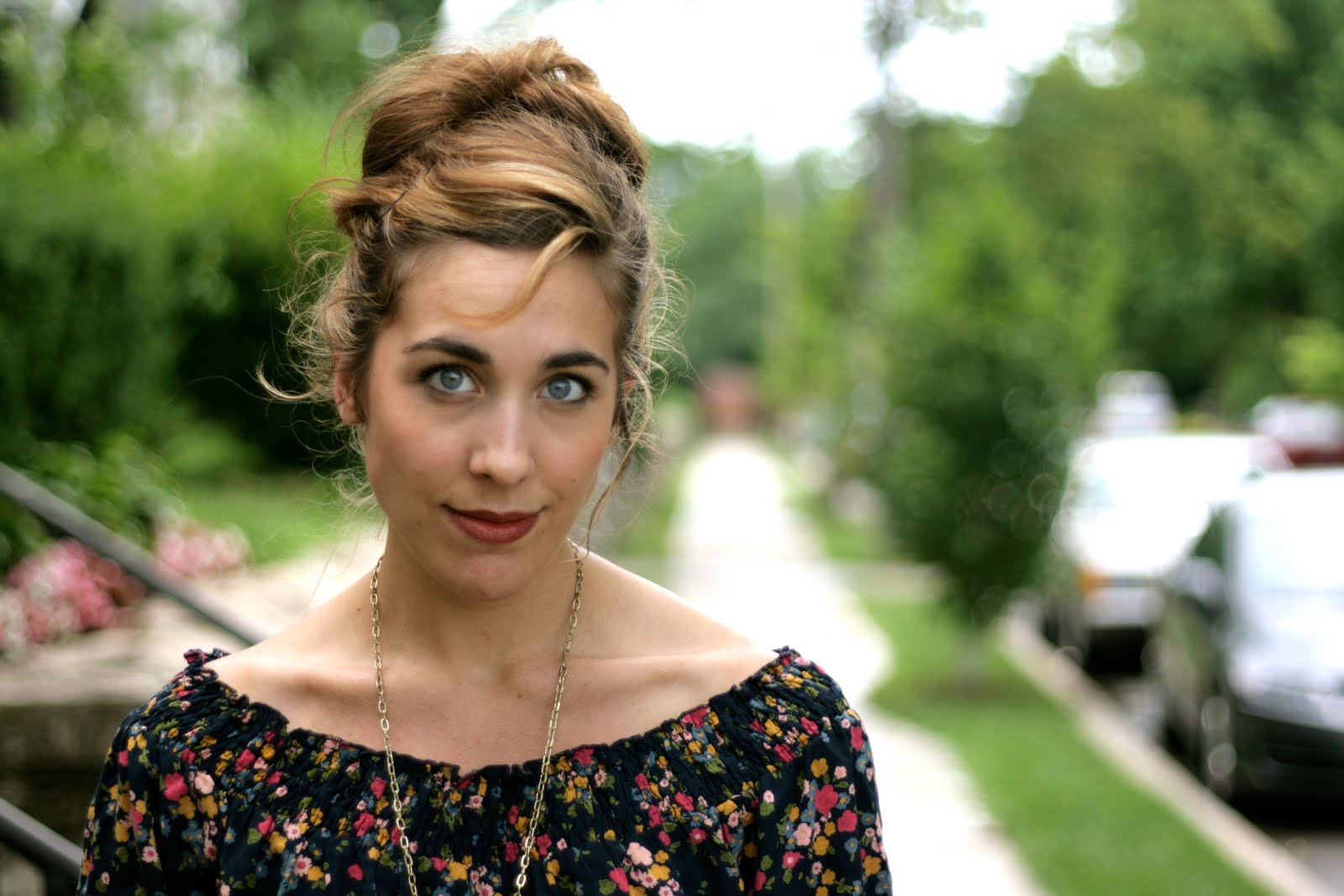 I love this romper – I have to say that this may be one of my favorites among your outfits! Everything about this romper just hits right on the mark (this is coming from someone who is still terrified of wearing rompers herself!): I love the great little floral print and I like that it doesn’t look to romper-ish (if you know what i mean – it looks like it could also be a dress). And as with every good outfit the accessories are just icing on the cake – you look amazing!