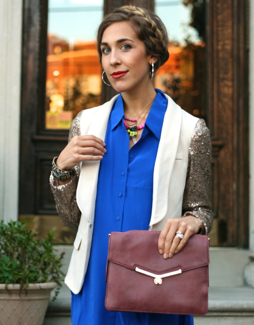 That blazer is amazing!!!! Love it! And that blue is so gorgeous on you! Hope you are having a great week!