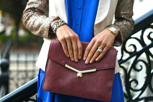 Love that bag & the sequin-sleeve blazer…plus your hair looks amazing like this!